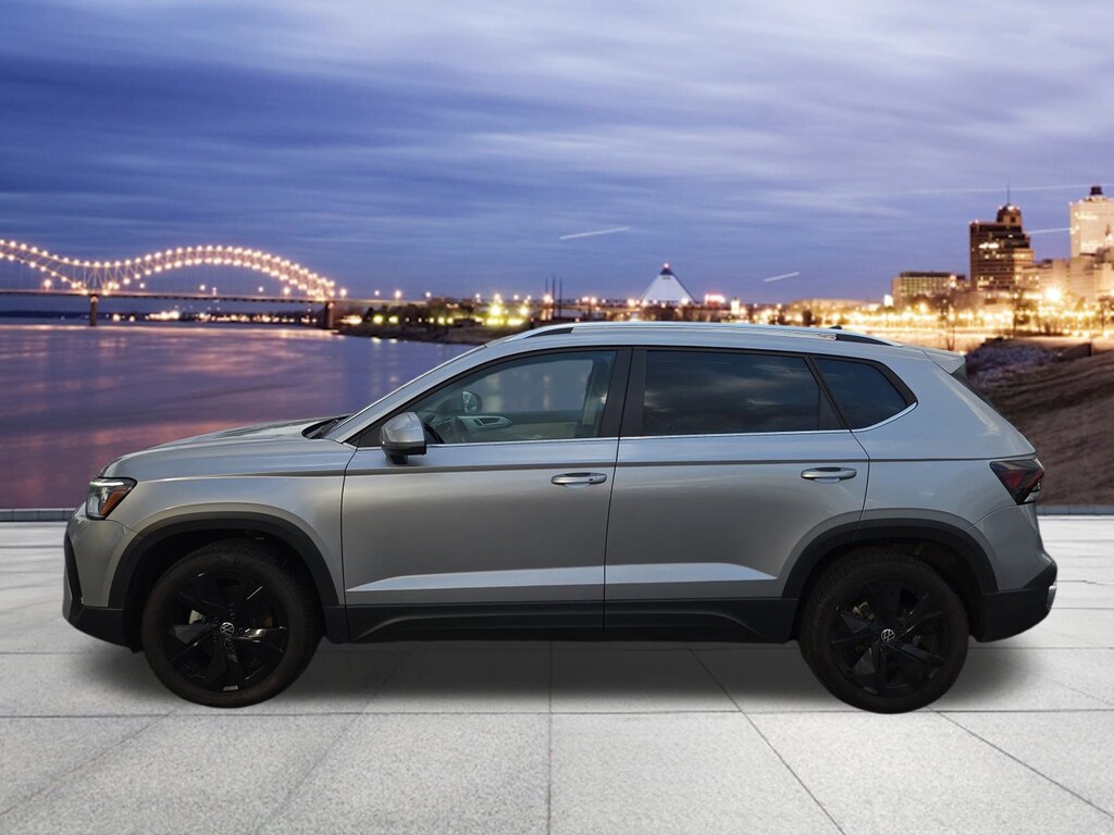 This 2025 Volkswagen Taos 1.5T SE in Pyrite Silver Metallic features. 6 Speakers, ABS brakes, Active Blind Spot Monitor, Alloy wheels, Auto High-beam Headlights, Automatic temperature control, Brake assist, Bumpers: body-color, Delay-off headlights, Driver door bin, Driver vanity mirror, Dual front side impact airbags, Electronic Stability Control, Emergency communication system: VW Car-Net Safe & Secure 5-year, Front Center Armrest, Front dual zone A/C, Front reading lights, Front Strut Rear Torsion Beam Suspension, Front wheel independent suspension, Heated door mirrors, Heated Front Bucket Seats, Heated front seats, Heated steering wheel, Illuminated entry, Low tire pressure warning, Occupant sensing airbag, Overhead console, Power driver seat, Power Steering, Power windows, Radio data system, Radio: MIB3 Composition Media AM/FM/HD, Rain sensing wipers, Rear seat center armrest, Rear window defroster, Rear window wiper, Security system, Speed-sensing steering, Tilt steering wheel, Traction control, Trip computer, Wheels: 18" 2-Tone Machined Alloy. 28/36 City/Highway MPG